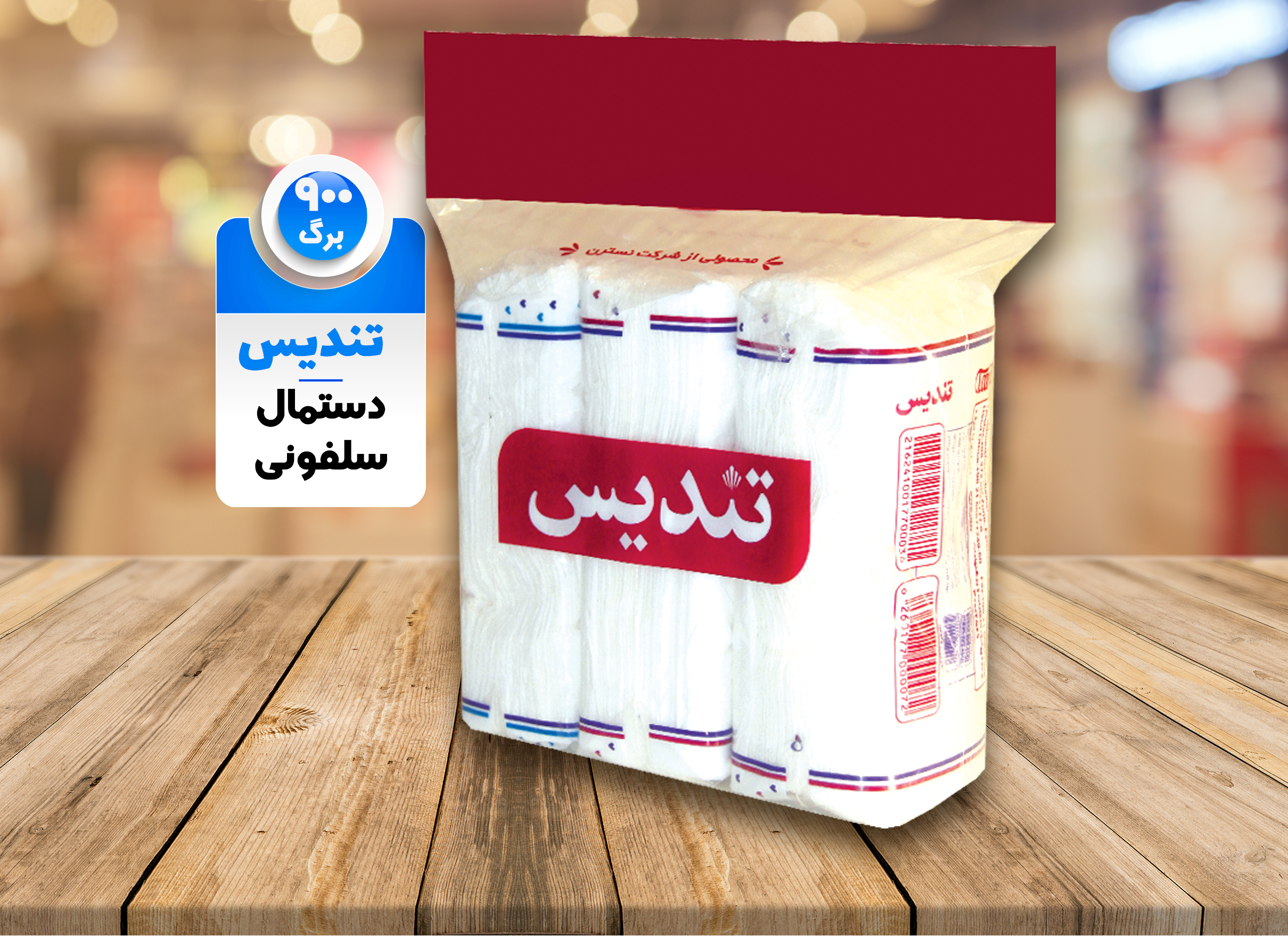 دستمال اقتصادی900 برگی تندیس(3بسته 300 برگی) ابعاد20*20/5 تهیه شده از تیشو 100% ممتاز